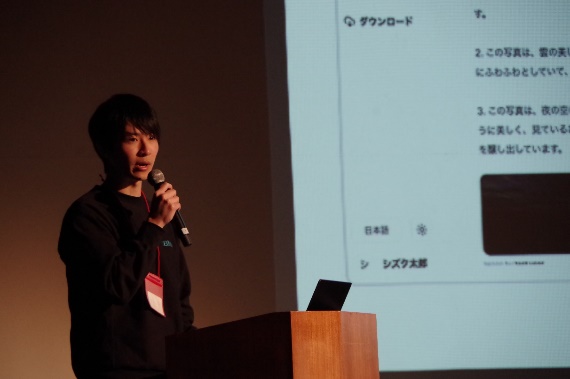 続いては、クリエイターに新たな活躍の場を生むストックフォトサービスを展開する株式会社cizucuの太田氏。従来の同種サービスと異なり、ユーザーはキーワードではなくチャット形式で写真を検索し、あえて少数の候補しか表示しないことで、ユーザーが迷うのを防ぐというサービスです。