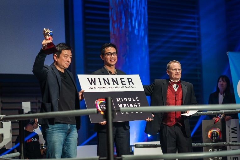 オランダに本部を置く非営利スタートアップ支援団体「Unknown Group」が運営するグローバルピッチイベント「GET IN THE RING」は、現在100カ国、10,000以上のスタートアップが参加。毎年、世界各国で地域大会が開催されており、その日本大会を大阪にて開催。今年度で9回目の開催となる。通常のステージではなく、リングを用いた演出で1対1のピッチバトルを行う形式が特徴。優勝者は翌年秋頃に海外で行われるグローバルファイナルへの挑戦権が得られる。