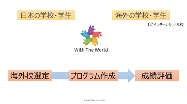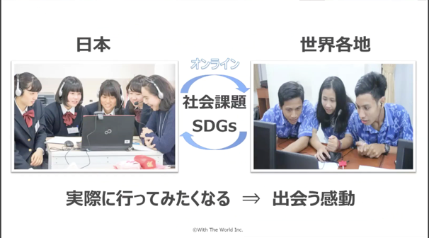 国内と海外の学校をオンラインでつなぎ、社会課題について議論するアクティブラーニング授業を展開する株式会社With The Worldは、2018年に起業してからすでに世界54か国330校と連携し、2020年だけでのべ1000人に実施しています。海外校の選定からプログラムの作成、オンラインでの実施サポート、成績評価までトータルに行い、リピートにもつなげています。