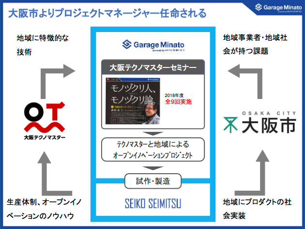 運営ではベンチャーを支援する株式会社リバネスと資本業務を提携し、ものづくり系スタートアップとパートナー企業である町工場らを連携し、アイデアをスピーディーにカタチにすることを支援しています。また、大阪市が認定する大阪テクノマスターとの連携では、プロジェクトマネージャーにも任命されし、セミナーの開催やプロジェクトを運営しています。そこから生まれた成果の一つである野球のバッティング練習用Tスタンド「SAKUGOE」は、履正社の高校野球初優勝に貢献したことで注目され、多くのプロ野球チームにも導入されています。
