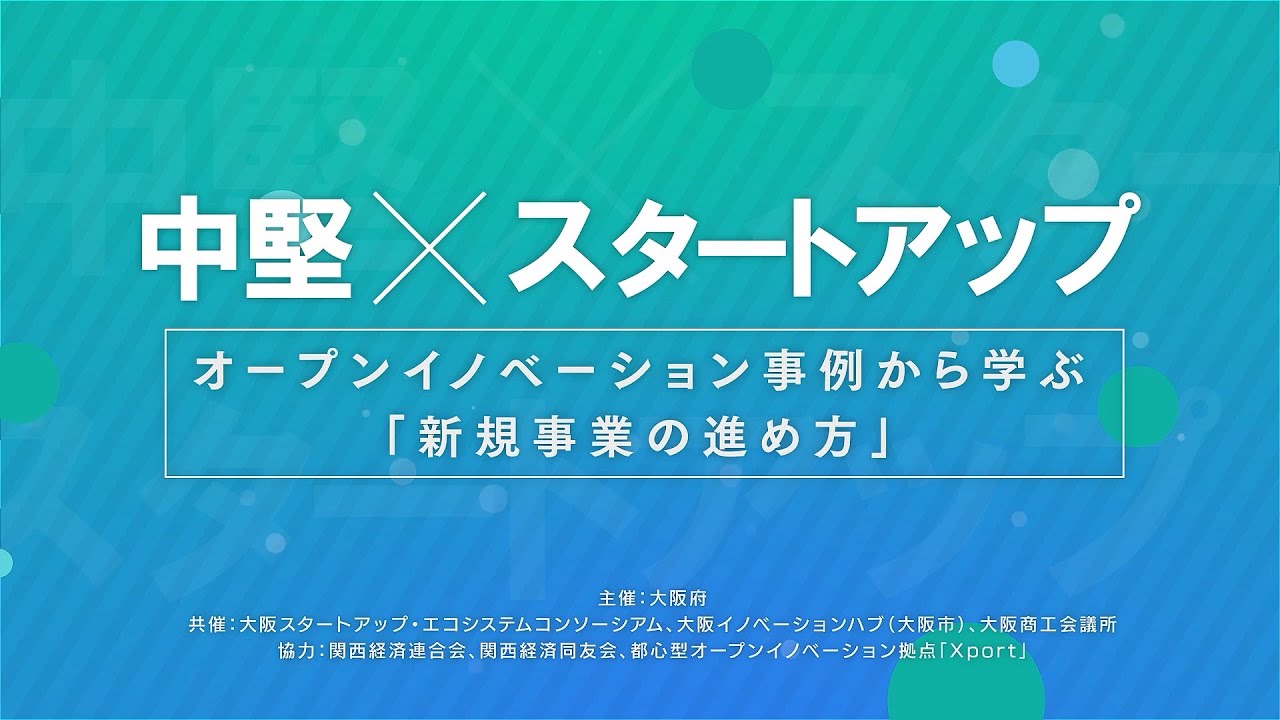 本イベントは、自社だけでなく他社や自治体など異業種、異分野が持つ技術やアイデア、ノウハウなどを組み合わせ、革新的なビジネスモデル製品やサービスを創り出すオープンイノベーションに取り組む大阪・関西の中堅企業やスタートアップが登壇。具体的な事例と体験談を有識者とのトークセッションとあわせて紹介し、新規事業に向けた今後の活動のヒントを提供することを目的としています。