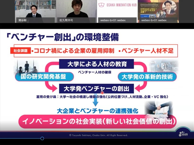 オンラインで開催しましたが、参加者からは、関谷氏と佐久間氏の話の内容が非常に良かったと多くの感想をいただきました。この後、10月1日から開催する4回講座「ライフサイエンスゼミ』では、各回のテーマごとに深掘りした活動を実践している方々の講義を通して、参加頂くみなさまのアイデアのブラッシュアップ、事業化推進をお手伝いしていきます。