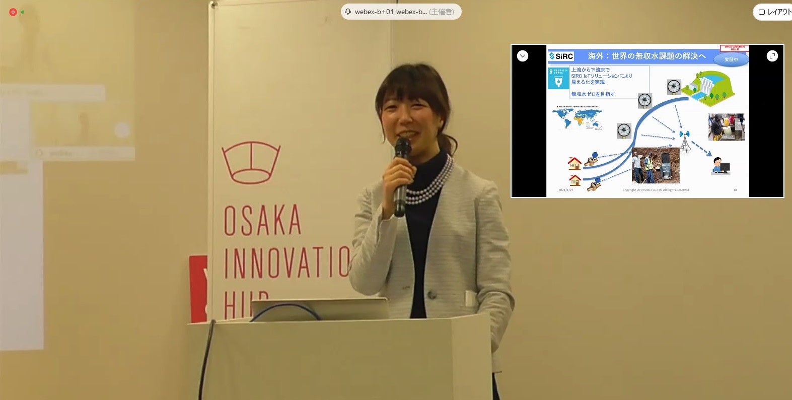 1社目は、大阪市立大学発ベンチャー「株式会社SIRC」代表取締役 高橋真理子氏より、同大学の辻本教授が研究開発されたセンサモジュール(SIRCデバイス)を使って、電力の可視化をはじめ、アナログメーターをIoT化し、リモート計測を可能とするデバイス等についてお話しいただきました。