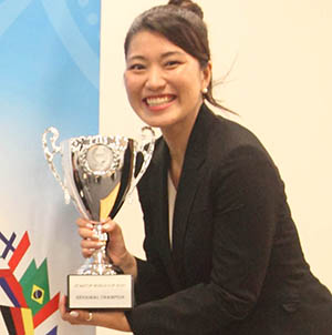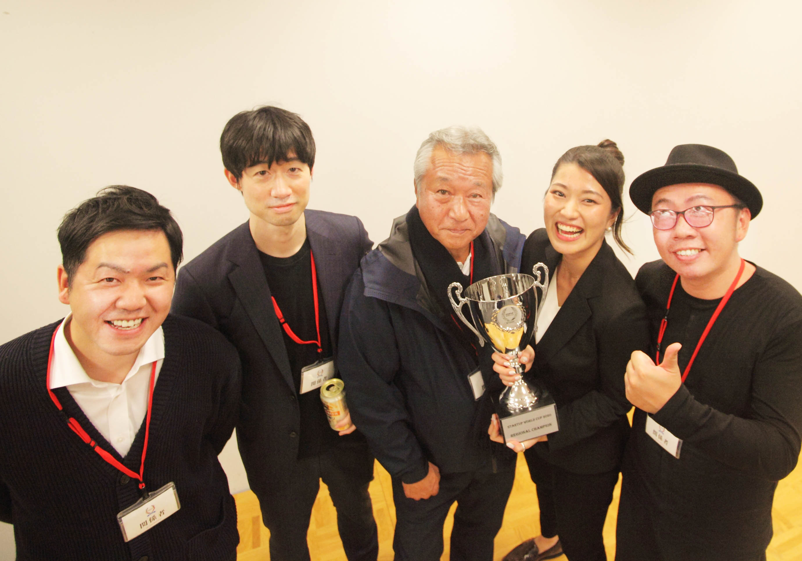 写真中央、大阪予選の優勝カップを受け取る伊藤氏