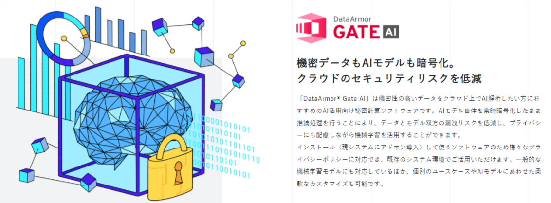 これは、データだけでなくAIモデル自体も暗号化したまま、クラウド上での処理を可能にする「AI活用向け秘密計算ソフトウェア」だ。