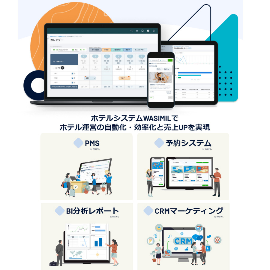 それらのサービスとは一線を画し、PMSの機能はもちろん、マーケティングやBI分析などの機能も備え、ホテル経営の「攻め」の部分まで支援するシステムがある。京都に本社を置くスタートアップ、株式会社AZOO(以下、AZOO)が手がける『WASIMIL』だ。宿泊管理用のツール、CRM用のツール、経営分析用のツール…とこれまで別々のソフトを使い分けていた宿泊施設も、『WASIMIL』があればワンストップで完結する。業務を効率化しつつ、収益向上にも貢献してくれる心強いシステムだ。