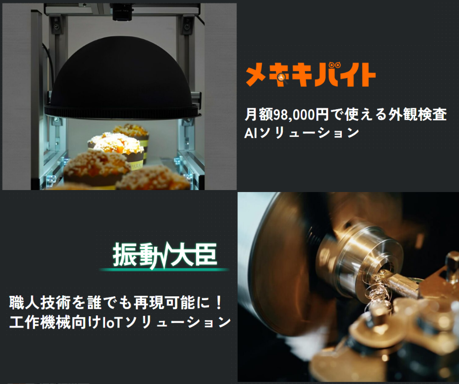 人手不足に悩む製造現場のなかでも、特に検品・検査の工程は目視だけでなく、音や振動など、職人の経験や感覚に頼るしかなく、中小企業は人材の確保に苦労しています。私たちのサービスは、これまで人が行っていたその工程を、AIに画像や振動を認識・学習させることによって自動化するというものです。