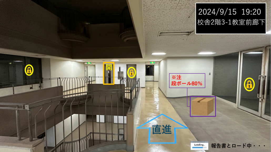 警備護衛門では、扉の閉め忘れやカギのかけ忘れなど、警備員がチェックすべき箇所を事前に設定し、ARグラス上などに表示します。これにより、グラスを装着した警備員は巡回警備中に、抜け漏れなくチェック箇所を確認することができます。