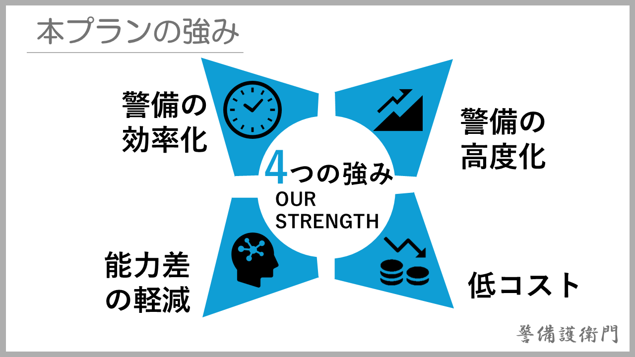 そこで警備護衛門は、人が現場に赴いて警備を行うことを前提としたうえで、AIなどの技術が人をアシストするという仕組みを採用しました。この点が既存の警備ロボットとの大きな違いです。