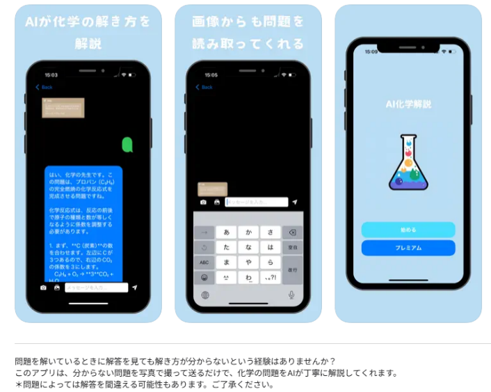 現在、力を入れている事業の1つが、教育系のアプリの開発です。その1つ『AI解説』シリーズは、AIが物理や化学、数学など、理数系の科目の問題解説をしてくれるアプリです。解けない問題をスマホカメラで撮影すれば、AIが分かりやすく解説してくれます。