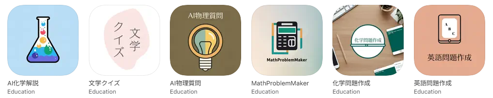 また、『問題作成』シリーズは、自分が必要としている問題をAIが作ってくれるアプリです。苦手分野の問題をもっと解いて練習したい。けれど参考書や問題集では問題数が限られてしまうという、私自身が学生の頃に感じた困りごとから生まれました。