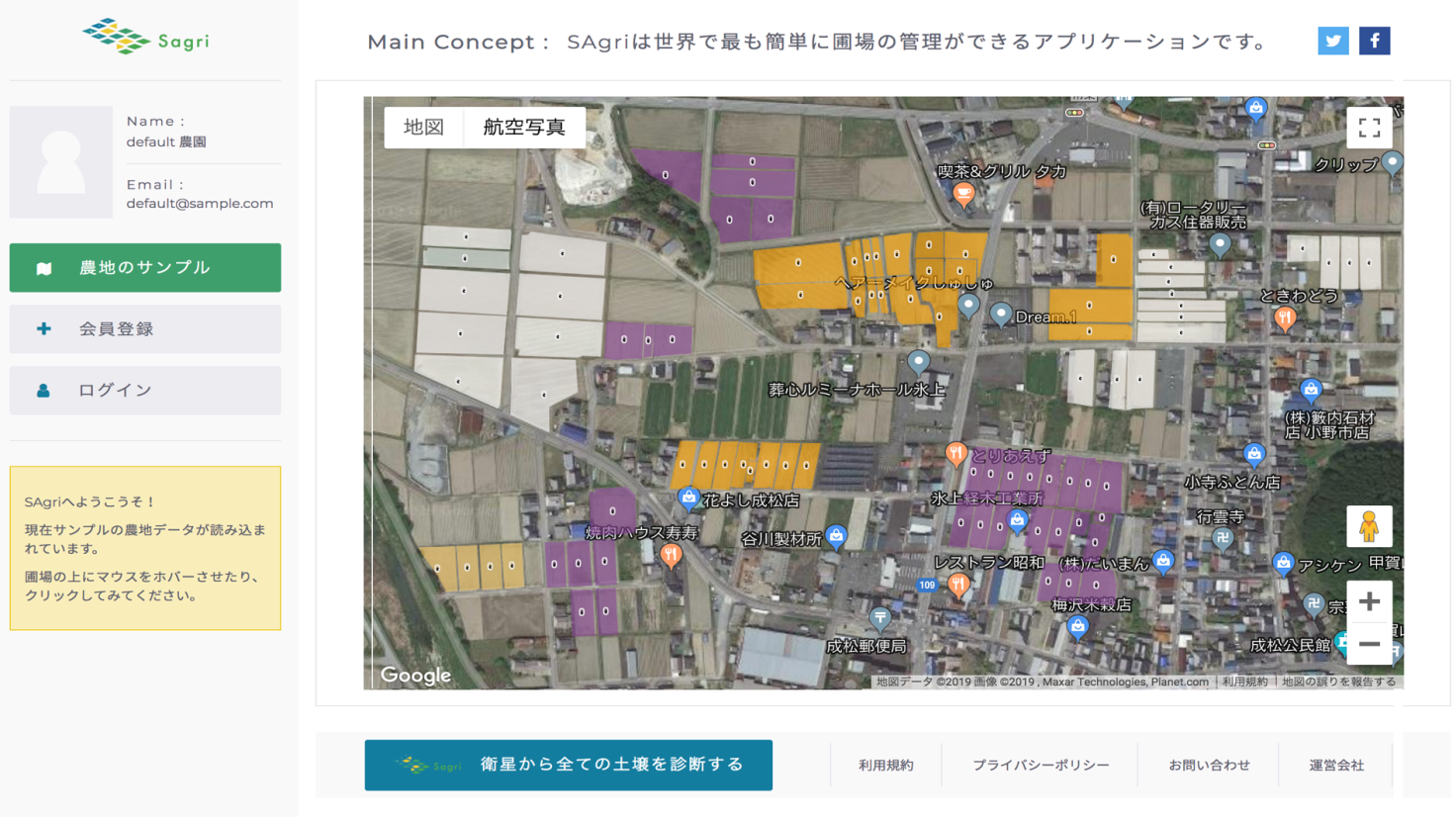 「SAgriの事業の強みは、耕作面積や土壌の質、栽培に適した作物等の農地情報と人工衛星からの土地の区画データを組み合わせて農地情報のデータベースを構築しているところにあります。このデータとIT技術の融合により、『この農地では〇〇がよく育つ』『〇〇だと高い収穫量が見込める』等、個々の農地の指標を見える化できるわけですね。