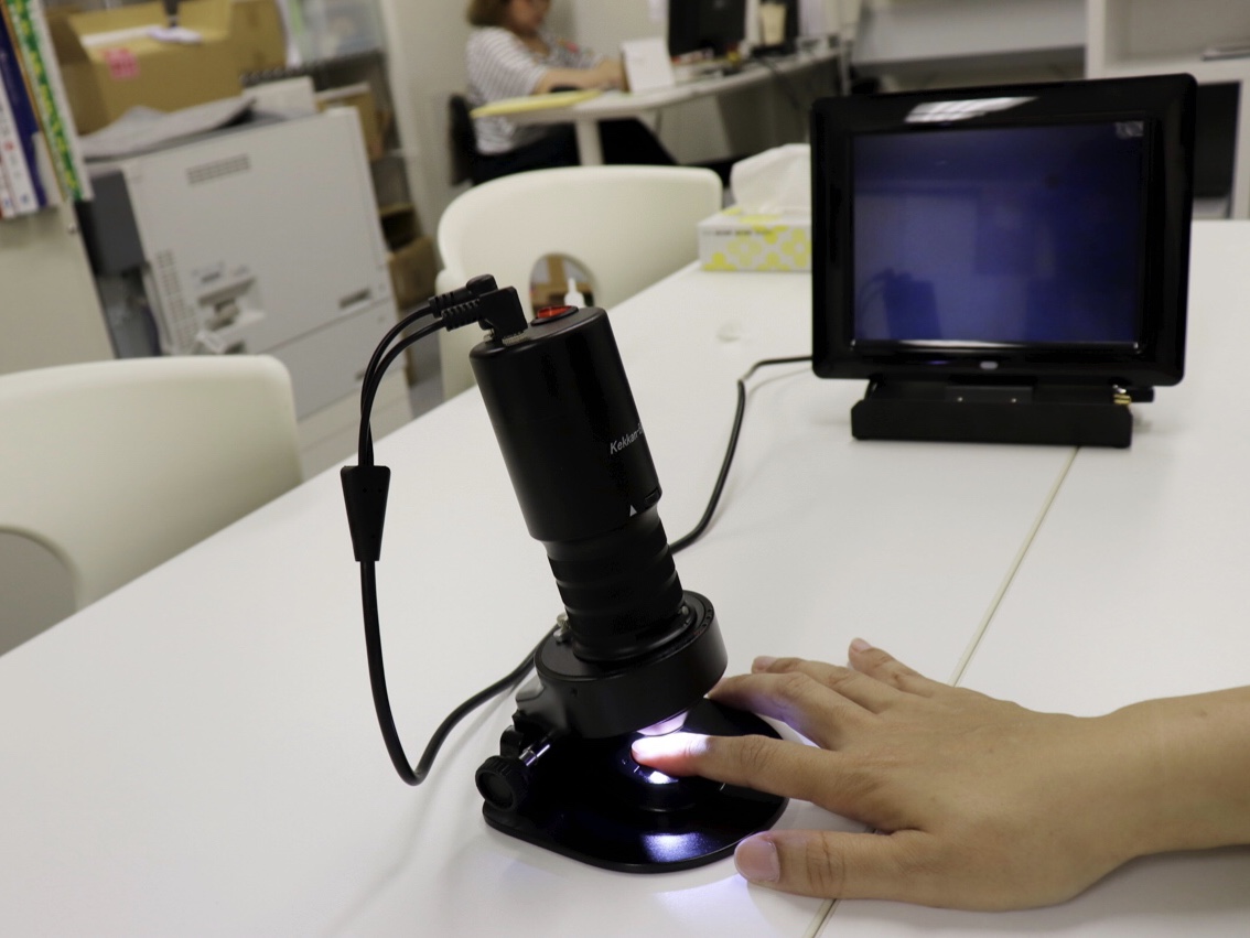 毛細血管スコープ『血管美人』は、あっと株式会社が製造販売をする毛細血管の血流を観察する機器だ。2009年の会社設立以来、すでに約1000台を販売した実績がある。主要な販売先は、医療機関や薬局チェーン、大手自動車企業の健康保険組合、大手サニタリー企業の商品開発部門など。大手サニタリー企業の商品開発部門では、商品の効能評価用として採用されている。