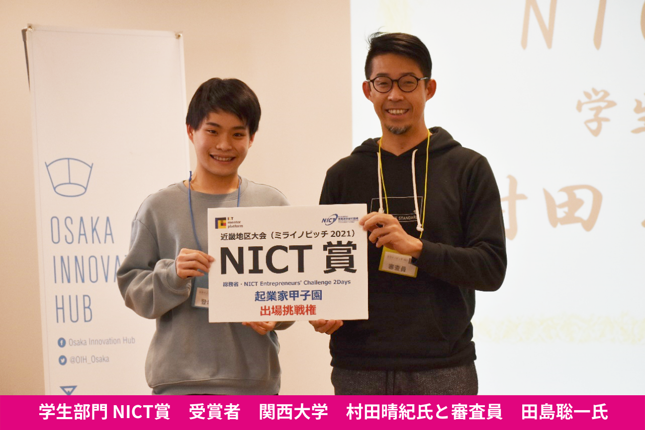 本イベントは、総務省、国立研究開発法人情報通信研究機構共催の「起業家甲子園・起業家万博」の近畿地区予選としての位置付けでもあり、成績優秀者を全国大会となる「起業家甲子園・起業家万博」へ送り出すこととしています。