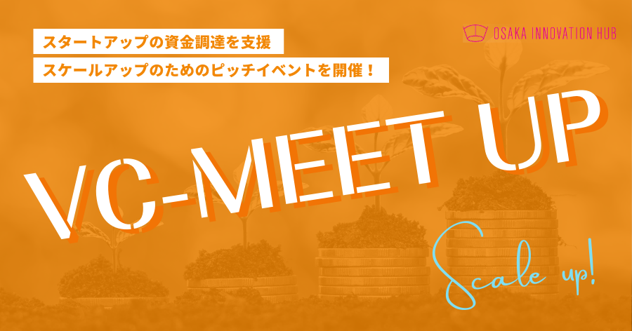 大阪イノベーションハブ(OIH)の定例ピッチイベント「VC-MEET UP」は、資金調達をめざす今注目のスタートアップが登壇し、関心のあるベンチャーキャピタル(VC・CVC※)が参加します。
